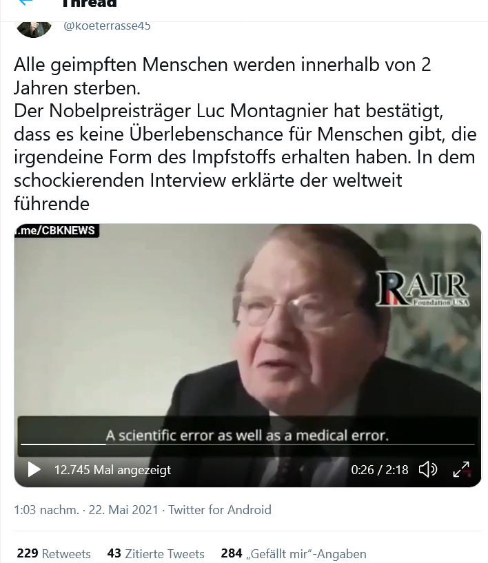 zitat nicht von montagnier sorry impfgegner ihr werdet uns auch in 2 jahren nicht los volksverpetzer