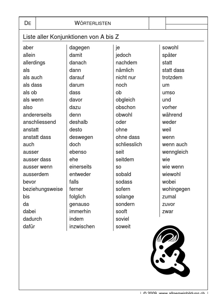 q woerterlisten alle konjunktionen