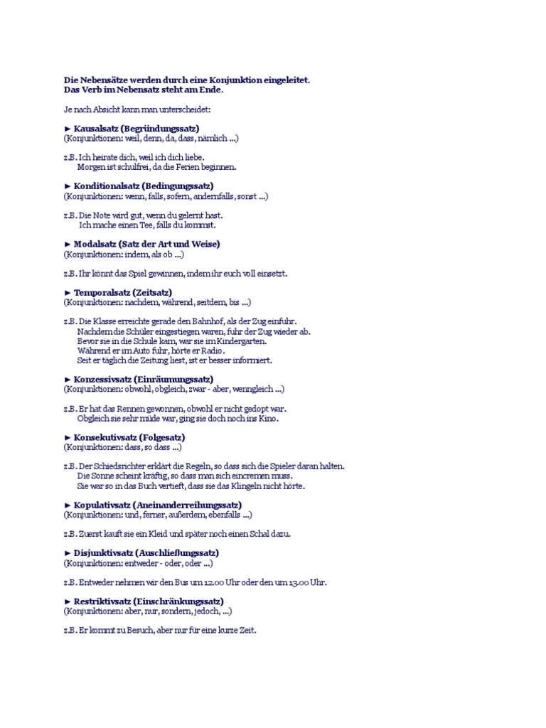 adverbiale nebensatze ubersicht deutsch daf arbeitsblatter